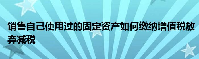 关于销售自己使用过的固定资产如何缴纳增值税放弃减税这个很多人还不知道,今天菲菲来为大家解答以上的问题,现在让我们一起来看看吧!