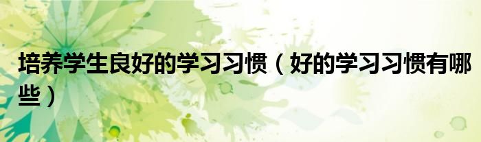 关于培养学生良好的学习习惯,好的学习习惯有哪些这个很多人还不知道,今天菲菲来为大家解答以上的问题,现在让我们一起来看看吧!