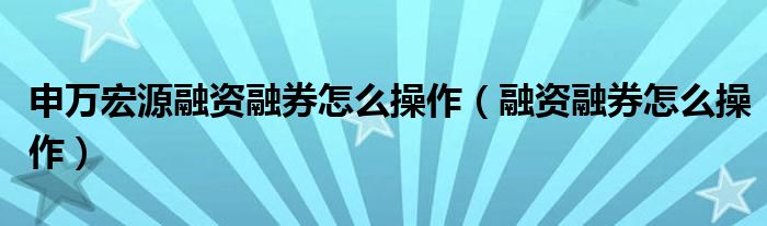 关于申万宏源融资融券怎么操作,融资融券怎么操作这个很多人还不知道,今天菲菲来为大家解答以上的问题,现在让我们一起来看看吧!