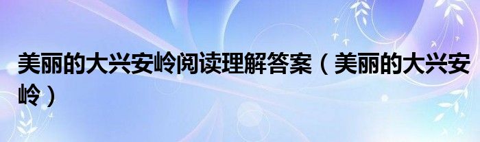 关于美丽的大兴安岭阅读理解答案,美丽的大兴安岭这个很多人还不知道,今天菲菲来为大家解答以上的问题,现在让我们一起来看看吧!