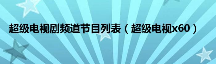大家好,来宝来为大家解答以下问题,超级电视剧频道节目列表,超级电视x60很多人还不知道,今天让我们一起来看看吧!