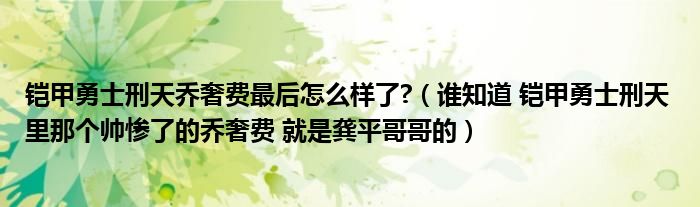 关于铠甲勇士刑天乔奢费最后怎么样了?,谁知道 铠甲勇士刑天 里那个帅惨了的乔奢费 就是龚平哥哥的这个很多人还不知道,今天菲菲来为大家解答以上的问题,现在让我们一起来看看吧!