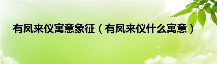 关于有凤来仪寓意象征,有凤来仪什么寓意这个很多人还不知道,今天菲菲来为大家解答以上的问题,现在让我们一起来看看吧!