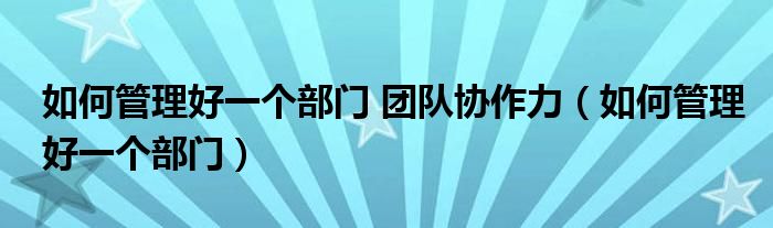 如何管理好一个部门 团队协作力(如何管理好一个部门)