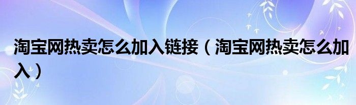 关于淘宝网热卖怎么加入链接,淘宝网热卖怎么加入这个很多人还不知道,今天菲菲来为大家解答以上的问题,现在让我们一起来看看吧!
