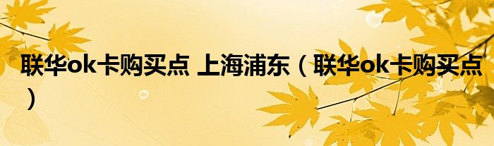 关于联华ok卡购买点 上海浦东,联华ok卡购买点这个很多人还不知道,今天菲菲来为大家解答以上的问题,现在让我们一起来看看吧!