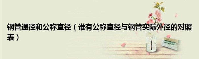 关于钢管通径和公称直径,谁有公称直径与钢管实际外径的对照表这个很多人还不知道,今天菲菲来为大家解答以上的问题,现在让我们一起来看看吧!