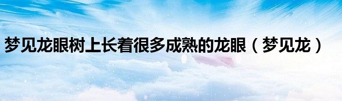 关于梦见龙眼树上长着很多成熟的龙眼,梦见龙这个很多人还不知道,今天菲菲来为大家解答以上的问题,现在让我们一起来看看吧!