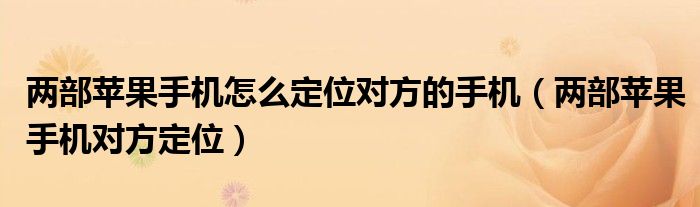 大家好,小晋来为大家解答以下问题,关于两部苹果手机怎么定位对方的手机,两部苹果手机对方定位很多人还不知道,今天让我们一起来看看吧!