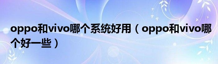 大家好,小晋来为大家解答以下问题,关于oppo和vivo哪个系统好用,oppo和vivo哪个好一些很多人还不知道,今天让我们一起来看看吧!