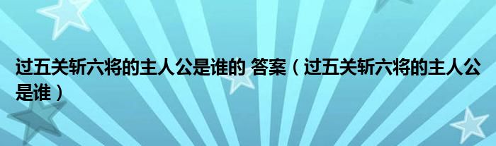 关于过五关斩六将的主人公是谁的 答案,过五关斩六将的主人公是谁这个很多人还不知道,今天菲菲来为大家解答以上的问题,现在让我们一起来看看吧!