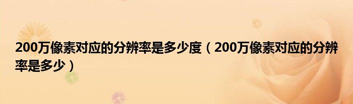 关于200万像素对应的分辨率是多少度,200万像素对应的分辨率是多少这个很多人还不知道,今天菲菲来为大家解答以上的问题,现在让我们一起来看看吧!