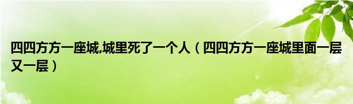 关于四四方方一座城,城里死了一个人,四四方方一座城里面一层又一层这个很多人还不知道,今天菲菲来为大家解答以上的问题,现在让我们一起来看看吧!