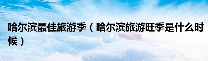 关于哈尔滨最佳旅游季,哈尔滨旅游旺季是什么时候这个很多人还不知道,今天菲菲来为大家解答以上的问题,现在让我们一起来看看吧!