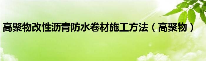 关于高聚物改性沥青防水卷材施工方法,高聚物这个很多人还不知道,今天菲菲来为大家解答以上的问题,现在让我们一起来看看吧!