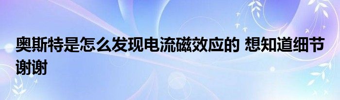 自从库仑提出电和磁有本质上的区别以来,很少有人再会去考虑它们之间的联系。而安培和毕奥等物理学家认为电和磁不会有任何联系。可是奥斯特一直相信电、磁、光、热等现象相互存在内在的联系,尤其是富兰克林曾经发现莱顿瓶放电能使钢针磁化,更坚定了他的观点。当时,有些人做过实验,寻求电和磁的联系,结果都失败了。奥斯特分析这些实验后认为:在电流方向上去找效应,看来是不可能的,那么磁效应的作用会不会是横向的? 在1820年4月,有一次晚上讲座,奥斯特演示了电流磁效应的实验。当伽伐尼电池与铂丝相连时,靠近铂丝的小磁针摆动了。这一不显眼的现象没有引起听众的注意,而奥斯特非常兴奋,他接连三个月深入地研究,在1820年7月21日,他宣布了实验情况。 奥斯特将导线的一端和伽伐尼电池正极连接,导线沿南北方向平行地放在小磁针的上方,当导线另一端连到负极时,磁针立即指向东西方向。把玻璃板、木片、石块等非磁性物体插在导线和磁针之间,甚至把小磁针浸在盛水的铜盒子里,磁针照样偏转。 奥斯特认为在通电导线的周围,发生一种“电流冲击”。这种冲击只能作用在磁性粒子上,对非磁性物体是可以穿过的。磁性物质或磁性粒子受到这些冲击时,阻碍它穿过,于是就被带动,发生了偏转。 导线放在磁针的下面,小磁针就向相反方向偏转;如果导线水平地沿东西方向放置,这时不论将导线放在磁针的上面还是下面,磁针始终保持静止。 他认为电流冲击是沿着以导线为轴线的螺旋线方向传播,螺纹方向与轴线保持垂直。这就是形象的横向效应的描述。 奥斯特对磁效应的解释,虽然不完全正确,但并不影响这一实验的重大意义,它证明了电和磁能相互转化,这为电磁学的发展打下基础