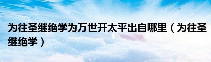 关于为往圣继绝学为万世开太平出自哪里,为往圣继绝学这个很多人还不知道,今天菲菲来为大家解答以上的问题,现在让我们一起来看看吧!