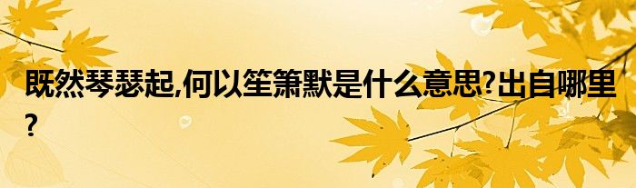 既然琴瑟起,何以笙箫默是什么意思?出自哪里?