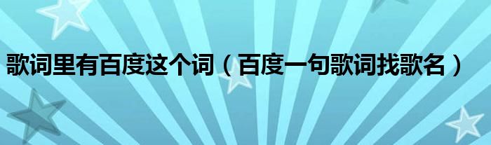 关于歌词里有百度这个词,百度一句歌词找歌名这个很多人还不知道,今天菲菲来为大家解答以上的问题,现在让我们一起来看看吧!