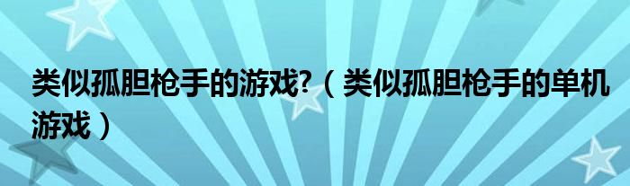 类似孤胆枪手的游戏?(类似孤胆枪手的单机游戏)