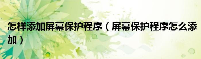 怎样添加屏幕保护程序(屏幕保护程序怎么添加)