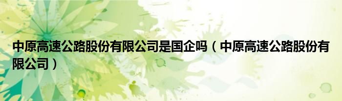 中原高速公路股份有限公司是国企吗(中原高速公路股份有限公司)