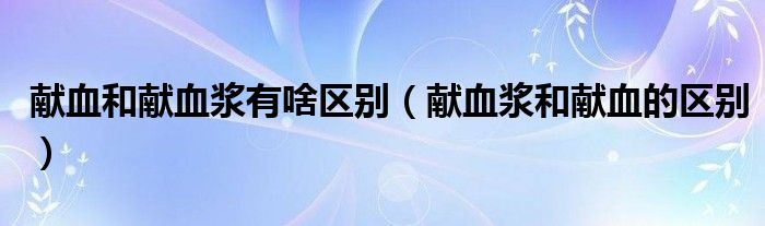 关于献血和献血浆有啥区别,献血浆和献血的区别这个很多人还不知道,今天菲菲来为大家解答以上的问题,现在让我们一起来看看吧!