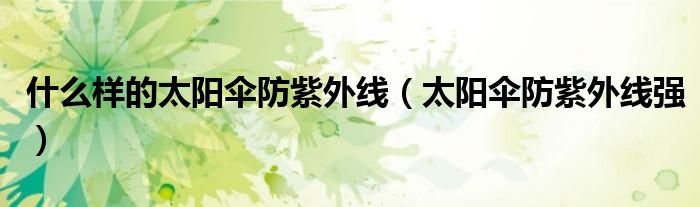 关于什么样的太阳伞防紫外线,太阳伞防紫外线强这个很多人还不知道,今天菲菲来为大家解答以上的问题,现在让我们一起来看看吧!