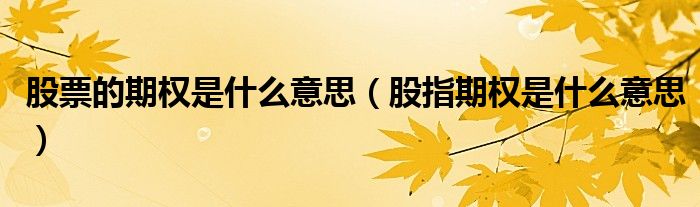 关于股票的期权是什么意思,股指期权是什么意思这个很多人还不知道,今天菲菲来为大家解答以上的问题,现在让我们一起来看看吧!