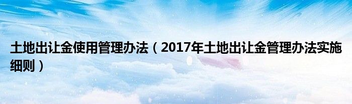关于土地出让金使用管理办法,2017年土地出让金管理办法实施细则这个很多人还不知道,今天菲菲来为大家解答以上的问题,现在让我们一起来看看吧!