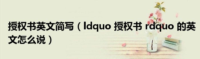 关于授权书英文简写,ldquo 授权书 rdquo 的英文怎么说这个很多人还不知道,今天菲菲来为大家解答以上的问题,现在让我们一起来看看吧!
