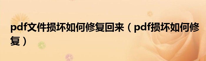 关于pdf文件损坏如何修复回来,pdf损坏如何修复这个很多人还不知道,今天菲菲来为大家解答以上的问题,现在让我们一起来看看吧!