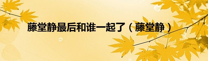关于藤堂静最后和谁一起了,藤堂静这个很多人还不知道,今天菲菲来为大家解答以上的问题,现在让我们一起来看看吧!