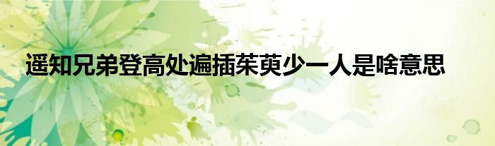 关于遥知兄弟登高处遍插茱萸少一人是啥意思这个很多人还不知道,今天菲菲来为大家解答以上的问题,现在让我们一起来看看吧!