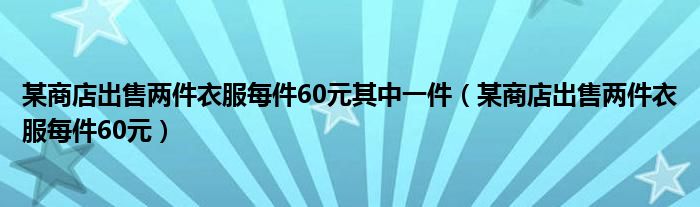 关于某商店出售两件衣服每件60元其中一件,某商店出售两件衣服每件60元这个很多人还不知道,今天菲菲来为大家解答以上的问题,现在让我们一起来看看吧!