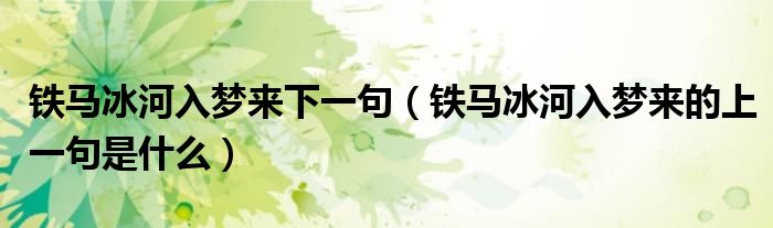 关于铁马冰河入梦来下一句,铁马冰河入梦来的上一句是什么这个很多人还不知道,今天菲菲来为大家解答以上的问题,现在让我们一起来看看吧!