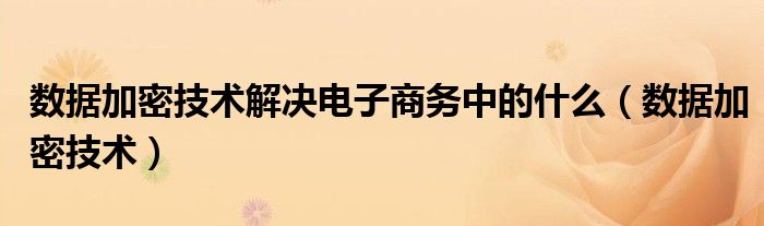 关于数据加密技术解决电子商务中的什么,数据加密技术这个很多人还不知道,今天菲菲来为大家解答以上的问题,现在让我们一起来看看吧!