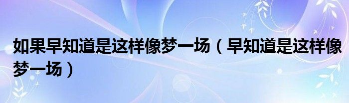关于如果早知道是这样像梦一场,早知道是这样像梦一场这个很多人还不知道,今天菲菲来为大家解答以上的问题,现在让我们一起来看看吧!