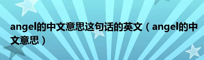 angel的中文意思这句话的英文(angel的中文意思)