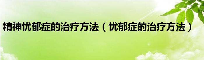 关于精神忧郁症的治疗方法,忧郁症的治疗方法这个很多人还不知道,今天菲菲来为大家解答以上的问题,现在让我们一起来看看吧!