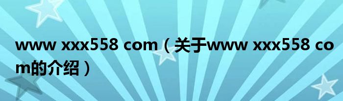 大家好,今天小乐来为大家解答以上的问题。www xxx558 com,关于www xxx558 com的介绍很多人还不知道,现在让我们一起来看看吧!