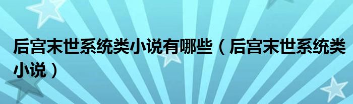 大家好,小晋来为大家解答以下问题,关于后宫末世系统类小说有哪些,后宫末世系统类小说很多人还不知道,今天让我们一起来看看吧!