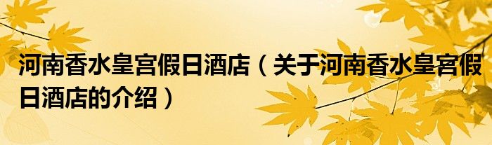 河南香水皇宫假日酒店(关于河南香水皇宫假日酒店的介绍)
