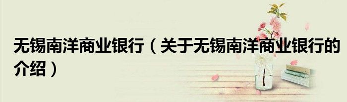 大家好,今天小乐来为大家解答以上的问题。无锡南洋商业银行,关于无锡南洋商业银行的介绍很多人还不知道,现在让我们一起来看看吧!