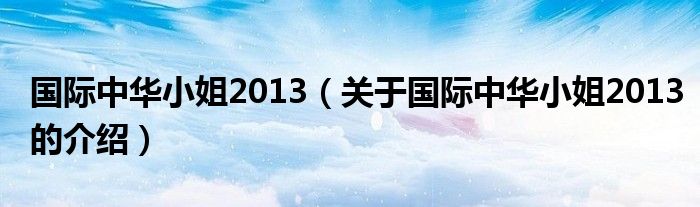 国际中华小姐2013(关于国际中华小姐2013的介绍)