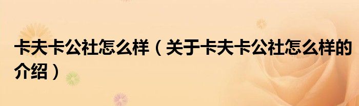 卡夫卡公社怎么样(关于卡夫卡公社怎么样的介绍)