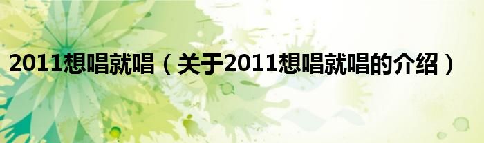 大家好,今天小乐来为大家解答以上的问题。2011想唱就唱,关于2011想唱就唱的介绍很多人还不知道,现在让我们一起来看看吧!