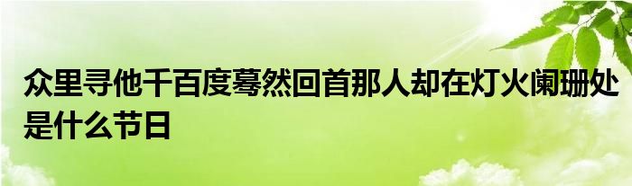 关于众里寻他千百度蓦然回首那人却在灯火阑珊处是什么节日这个很多人还不知道,今天菲菲来为大家解答以上的问题,现在让我们一起来看看吧!