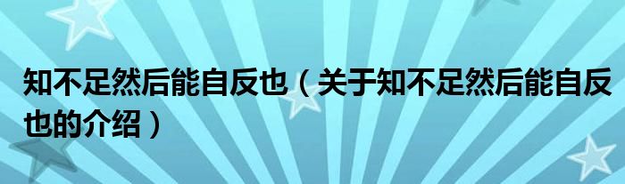 知不足然后能自反也(关于知不足然后能自反也的介绍)