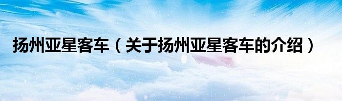 扬州亚星客车(关于扬州亚星客车的介绍)
